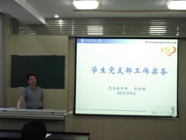 许佳辉老师系统讲解了党建工作方面的知识,强调了学生党支部的职责与其工作重点,并针对学校党建工作及如何发展学生党员等相关问题做了详细的介绍,鼓励各班党支部书记积极发展班上的入党积极分子,并做好党员的教育、管理和服务工作。