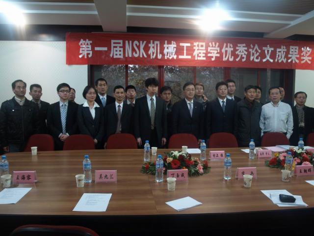 “NSK机械工程学优秀论文成果奖”,是由恩斯克投资有限公司设立的奖学金,旨在鼓励在机械工程专业领域内做出独特贡献和刻苦钻研的优秀研究生,今年是首次设奖,受奖学生10人,每人奖励5000元人民币。第一届“NSK机械工程学优秀论文成果奖”的获奖名单是:史宝全、李祥明、田洪淼、张桂铭、梁锦涛、张兴武、王金栋、崔致远、詹文菁、关 赪。