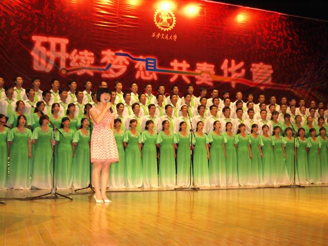 本次合唱比赛主题为“研续梦想,共奏华章”,由西安交大校团委主办,校研究生会承办,来自我校17个学院的11支参赛队伍齐聚一堂,为大家奉献了一场视听的盛宴。各支队伍相继拿出了自己拿手的参赛曲目,博得了在场观众的阵阵掌声和喝彩。各学院领导也积极加入到本次合唱比赛中,师生同台演出,现场洋溢着浓浓的师生情谊,展现了2010级研究生学子的风采。