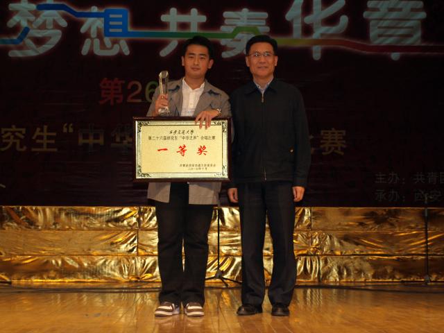 党委副书记訾艳阳、工会主席王朝辉、院办主任王收阁出席并参加了本次演出,凭借一曲《今天是你的生日,我的中国》赢得了满场观众的热烈掌声, 抒情豪迈的演唱,加上腰鼓队的激情舞蹈,使整个演出精彩纷呈。经过在场专业评委们的评审, 最终,以9.842分的最高成绩荣获了本次比赛的冠军.