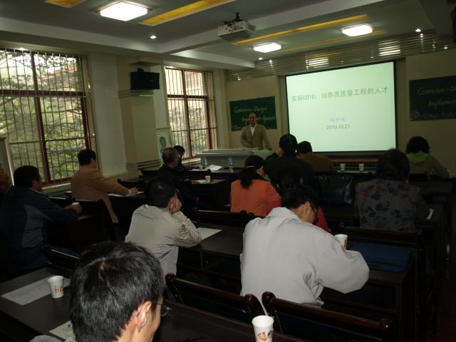2010年10月21日下午,在成人直播 第三会议室召开了CDIO培养模式研讨会,学校副教务长邱捷教授,学院党政领导,各系所教学负责人,学院全体教授等30余人参加会议。会议由常务副院长高建民教授主持。