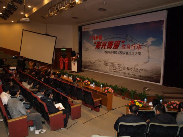 2010年11月18日,广汽本田向西安交通大学、重庆大学、南京航空航天大学、燕山大学、长安大学等十所高校捐赠试制车,捐赠仪式在科学馆举办,本广汽本田综合管理部张华部长、研究开发中心谭为科长、成人直播